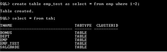 So, table with name EMP_TEST is created as we can see the result of “Select * from tab”.
