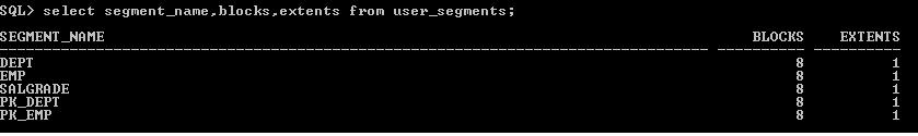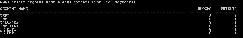Now see how many extents have been allocated for this. We will query USER_SEGMENTS for this.